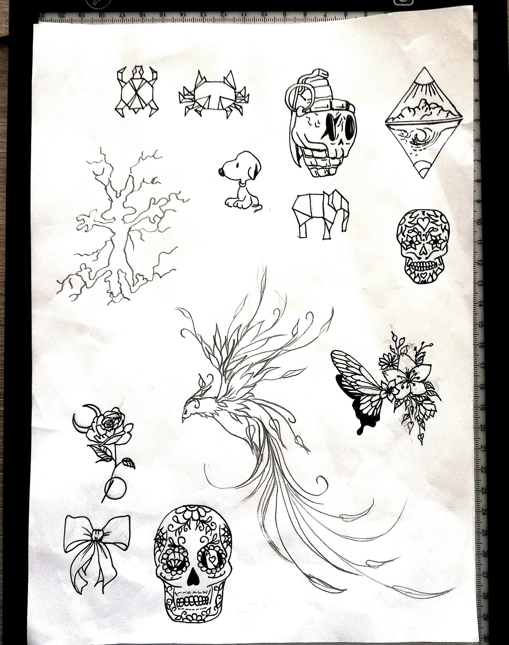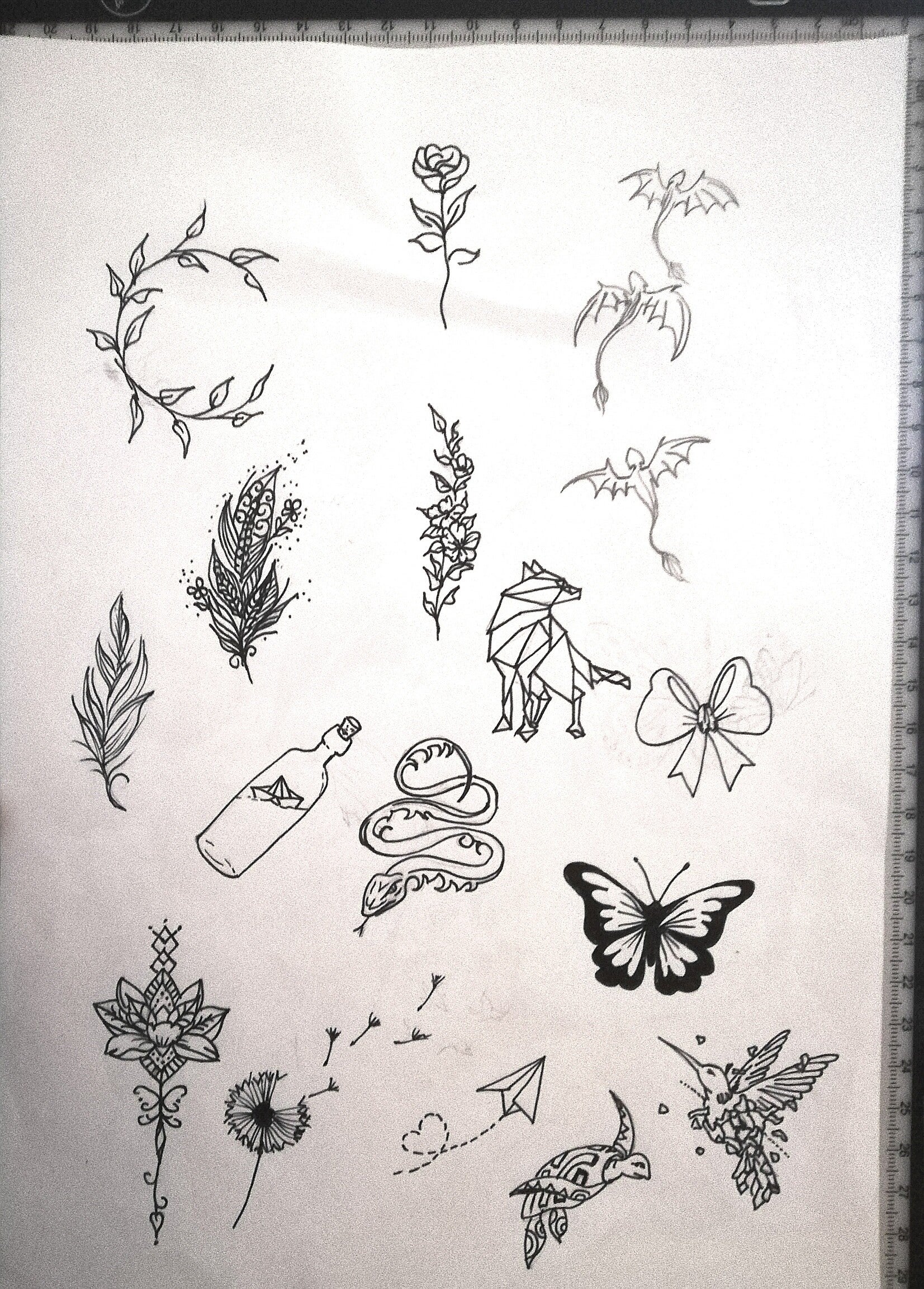 Dessins prêts à être tatoués de 15cm à 20cm max.